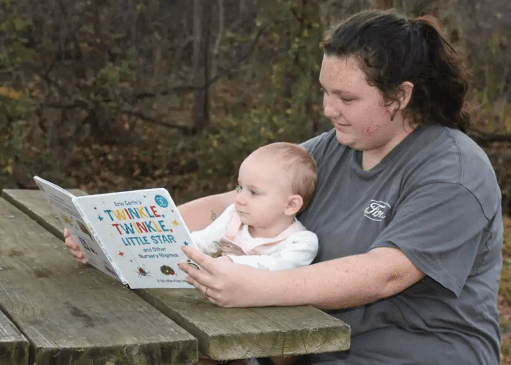 April registered for Dolly Parton’s Imagination Library which has distributed more than a million books to families with preschool children. Piper receives a book every month. One book helps teach her to color. Another helps her learn about her senses of smell, taste, touch, and sight, and a third contains 100 words to learn in English and Spanish.